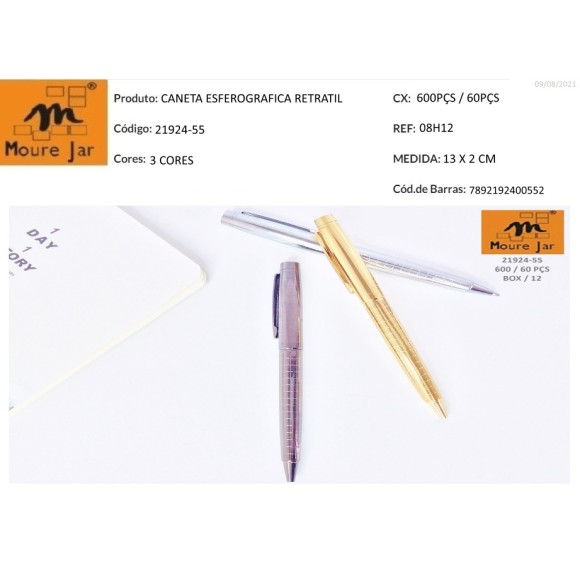 CANETA ESFEROGRAFICA RETRATIL CORPO METAL:MJ21924-55 C/12