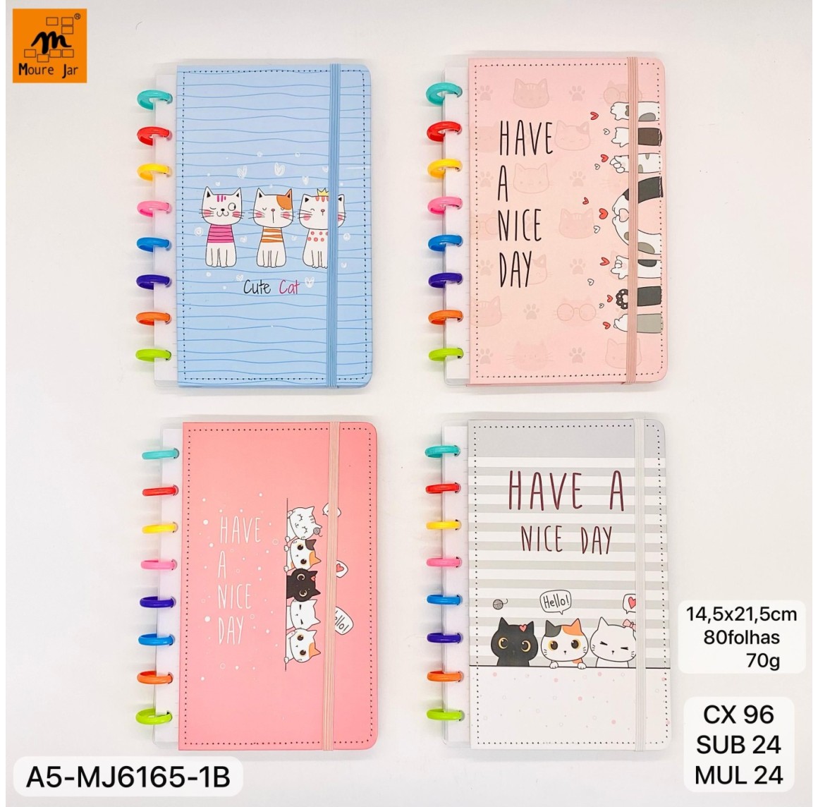 CADERNO REF: A5-MJ6165-1B. ------ CX:100PÇS/MIN:24PÇS -MUL:8PÇS
