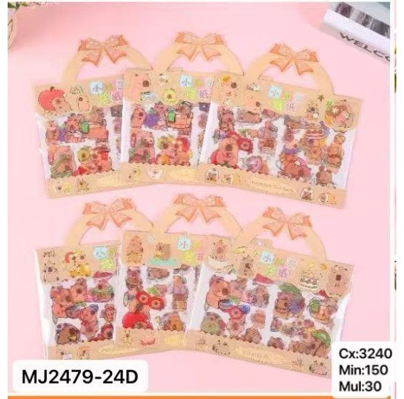 - REF:MJ2479-24D BX C/30 CARTELA ADESIVA DE PAPEL, COM DESENHOS CAPIVARA / LABUBU --------------- CX:3240PÇS/SUB:150PÇS -MUL:30PÇD