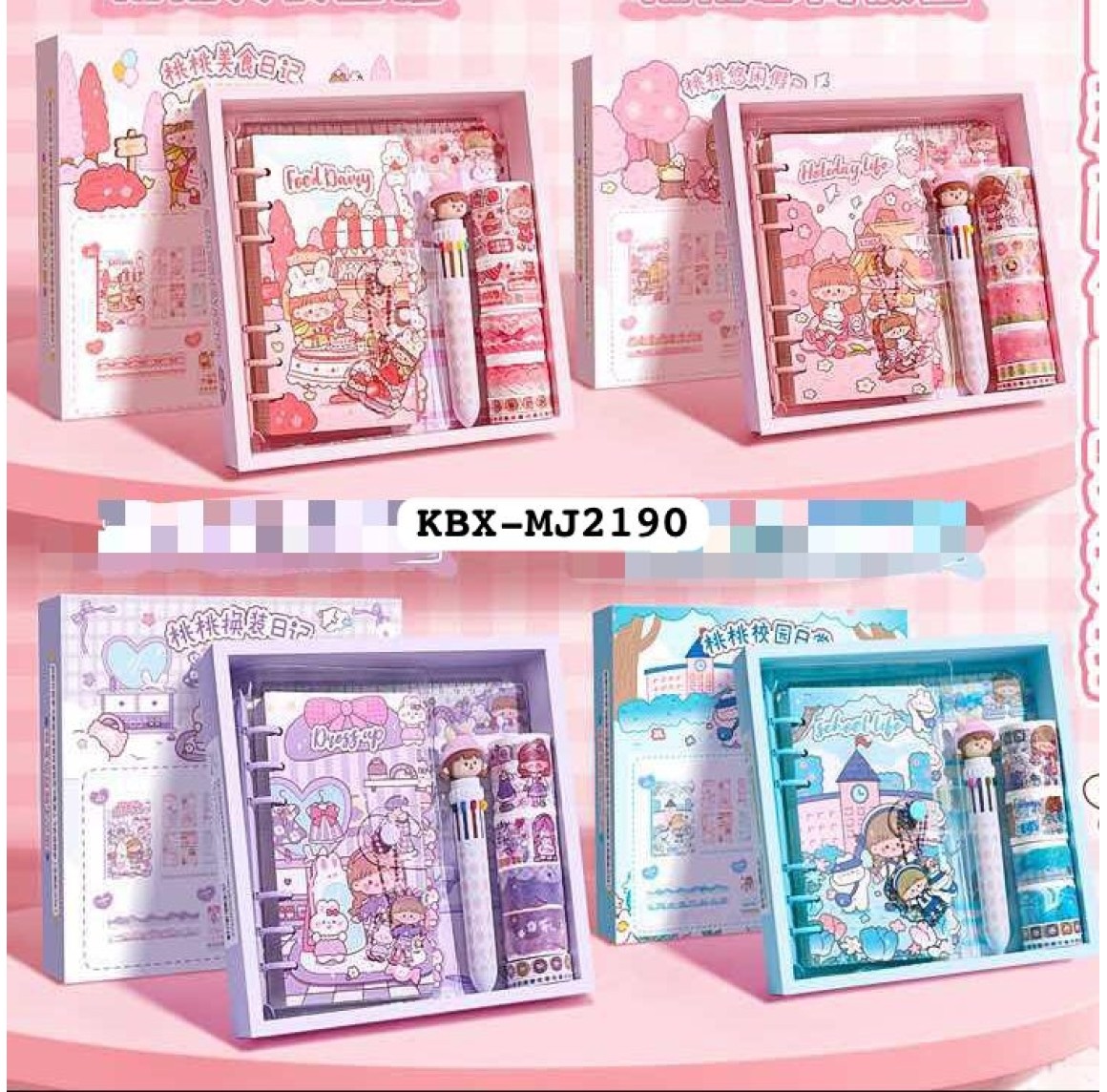 2. CADERNO KIT C/ CANETA, ADESIVOS. REF:KBX-MJ2190/A/B/C/D/----CX:40PÇS/MIN:20PÇS-MUL-20PÇS